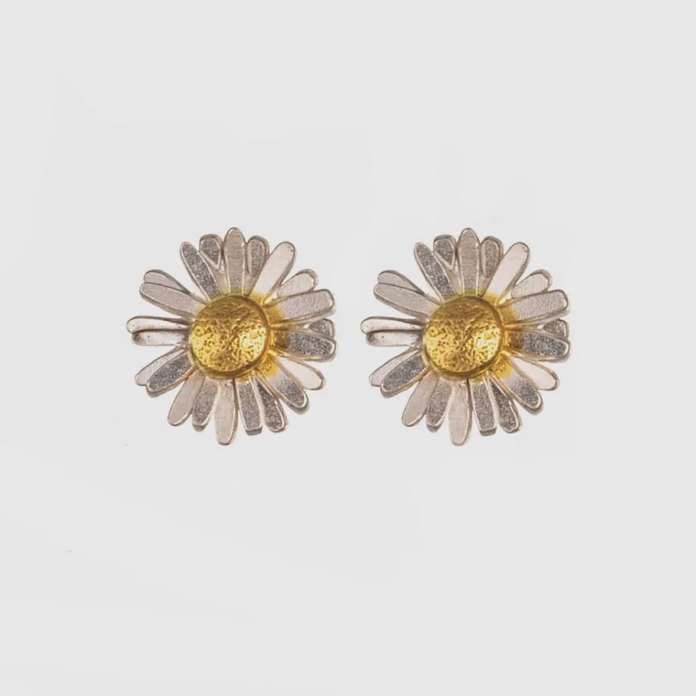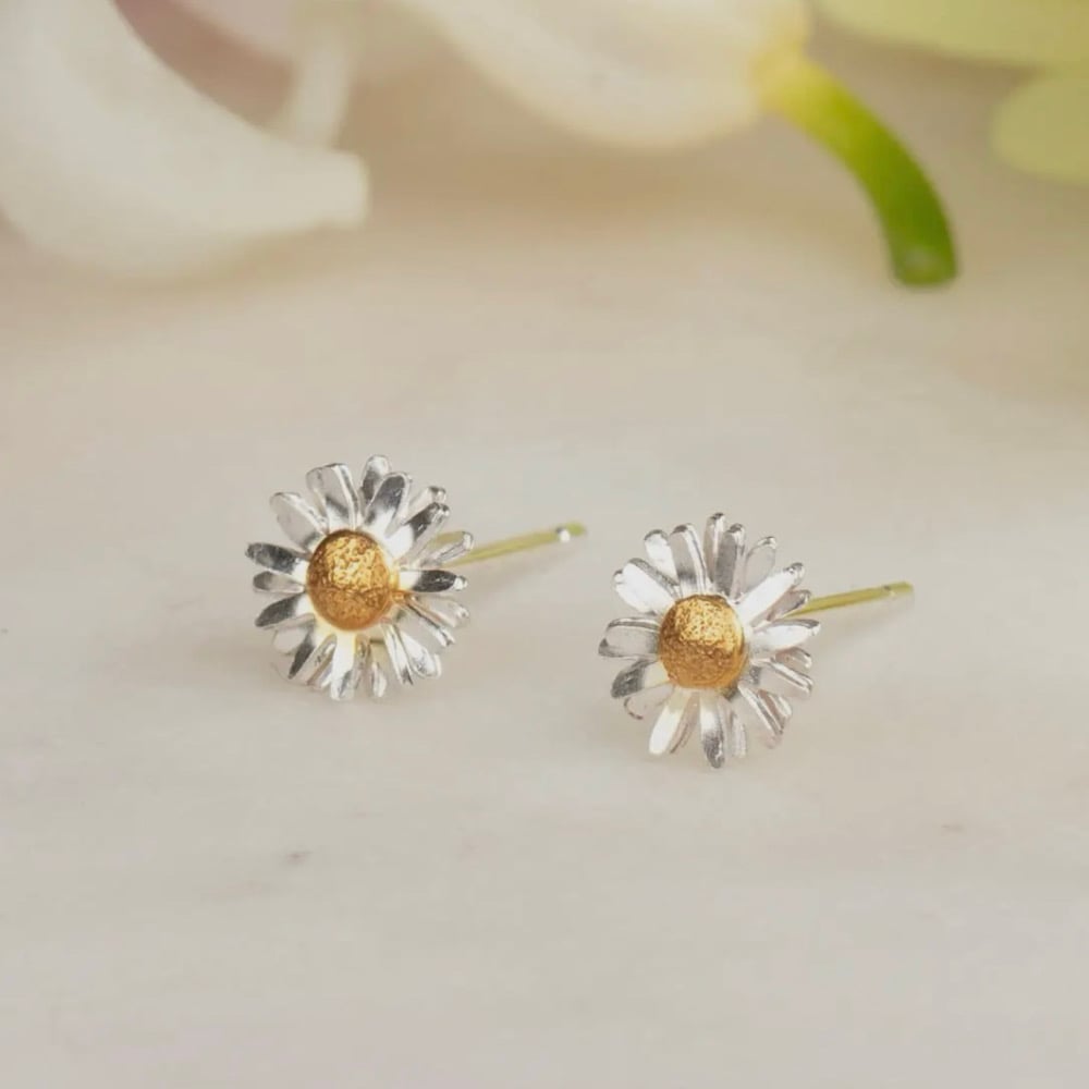 Handmade by Lincoln based designer Amanda Coleman. Delicate Silver Daisy Stud Earrings with a gold plate centre.