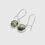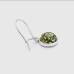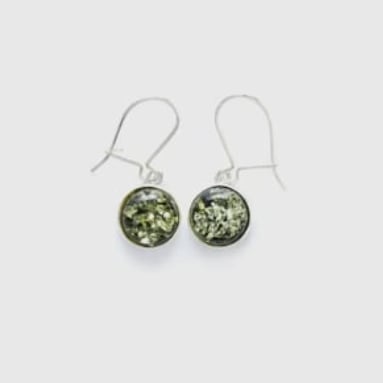 These silver drop earrings feature stunning green Baltic Amber, secured with a French hook.