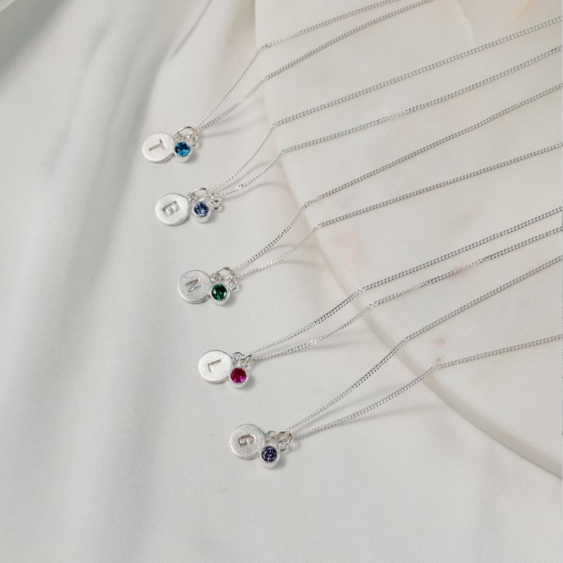 Please specify in your order notes the initial and birthstone month required, and allow up to 1 week for delivery as this necklace is made to order.