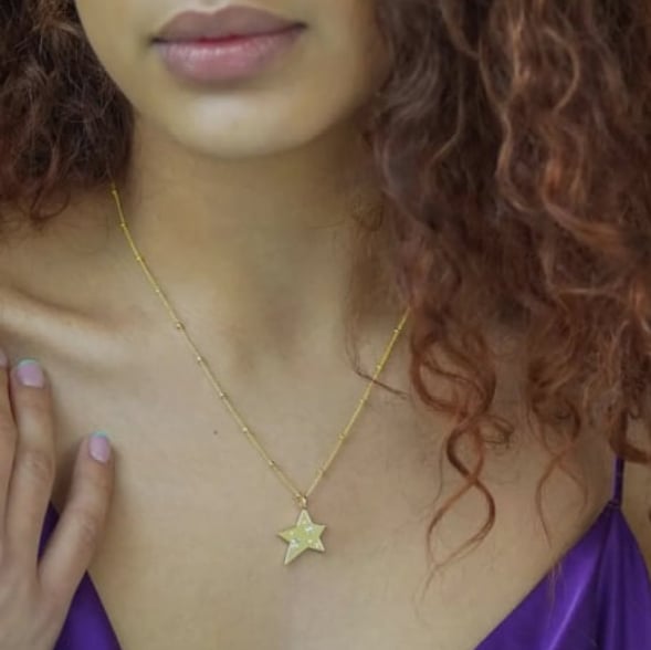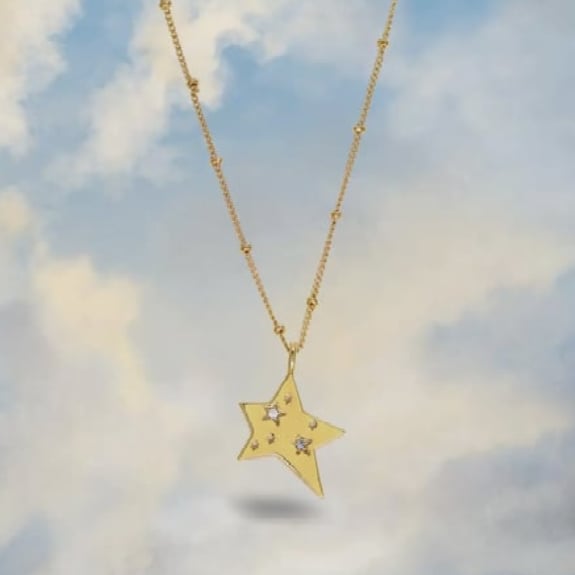 A star charm jewelled necklace plated in 14ct Gold by Guest Designer Junk Jewels.