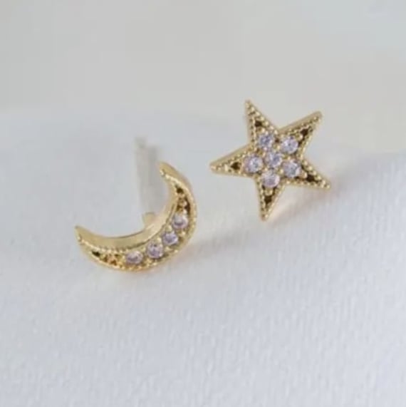 Crystal Moon and Star Stud Earrings, plated in 14ct Gold by Guest Designer Lisa Angel.