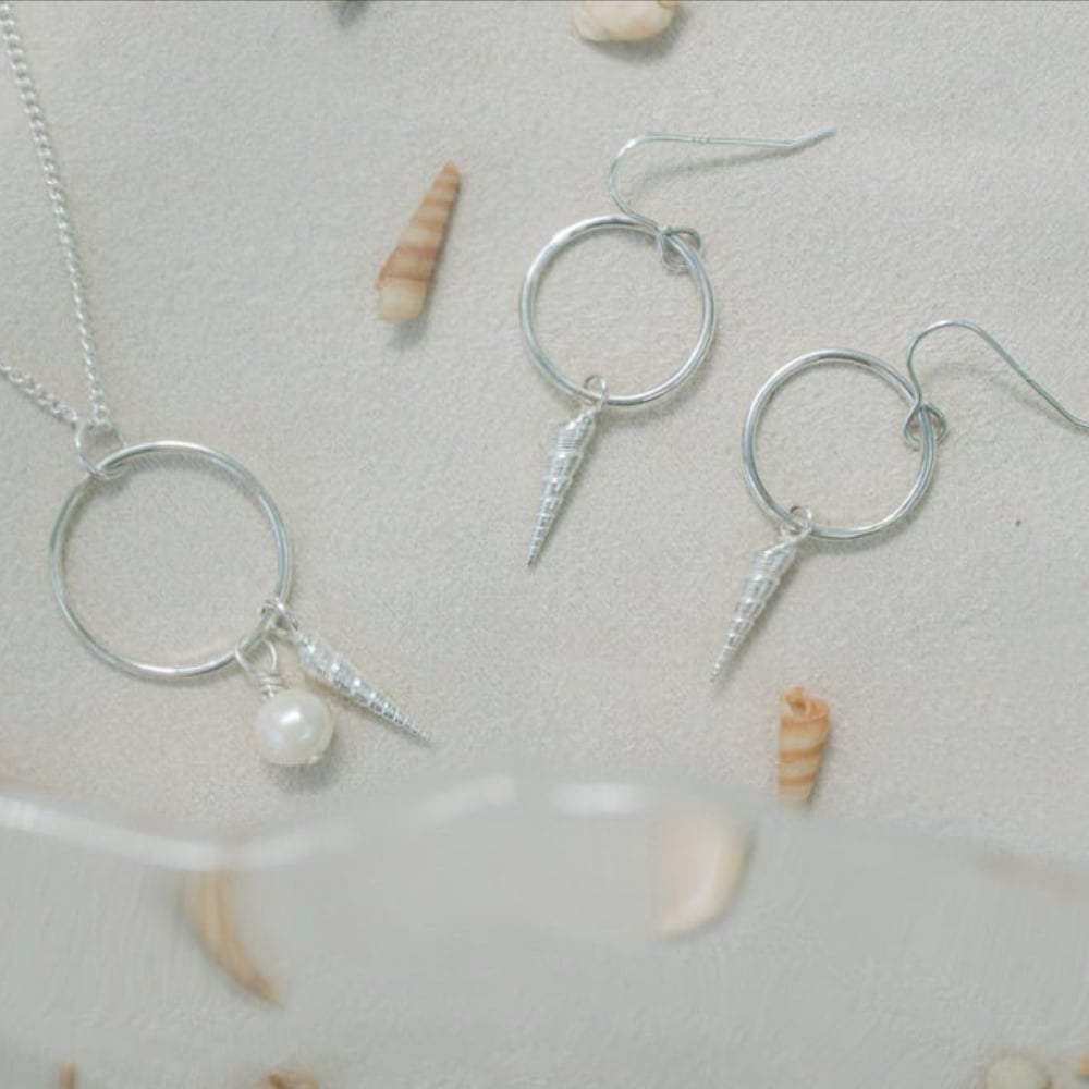 Silver Spiral Shell Drop Earrings